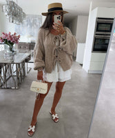 Colette - Solid Color Crew Neck Lace-Up Cardigan