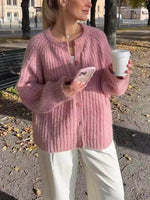 Ivanna - Lazy Style Loose Solid Color Long Sleeve Cardigan