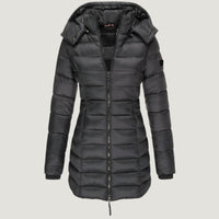 Lucy is a down jacket that keeps you warm and protected when the temperature drops. The generous length provides extra coverage and insulation, protecting your legs from the cold and wind. The hood adds an extra layer of warmth and a snug, cosy feeling in cold weather.