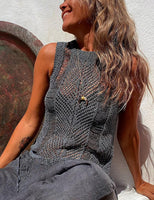 Embrace bohemian charm with this sleeveless knit top, featuring playful tassel details and a relaxed fit for easy movement.