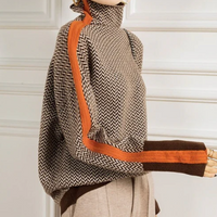 Say goodbye to itchy fabrics and shapeless sweaters. The Sophia Turtleneck is crafted from a premium, soft-touch knit that feels smooth, lightweight, and cozy against your skin. The bold herringbone pattern with warm orange accents brings a touch of modern sophistication, while the relaxed yet flattering fit makes it effortlessly versatile from day to night.