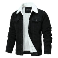 This sherpa-lined bomber jacket is crafted from premium cotton fibers for warmth and durability, featuring large buttons and a pop-up collar for added protection against the cold. With two breast pockets and dual side pockets, it offers plenty of storage for daily essentials. Size: Runs small—order one size up if between sizes. Material: Cotton, Polyester