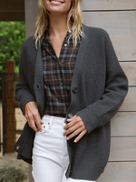Effortless, timeless, and endlessly wearable — The Riley Cardigan is your ultimate layering piece for every season. Crafted from a soft, ribbed knit with a relaxed drape, this cardigan brings understated elegance to your everyday wardrobe. The slightly oversized fit, dropped shoulders, and minimalist button closure create a chic, laid-back silhouette that transitions seamlessly from coffee runs to cozy evenings at home. Style with tailored trousers for a refined look, or throw over denim for an off-duty vibe.
