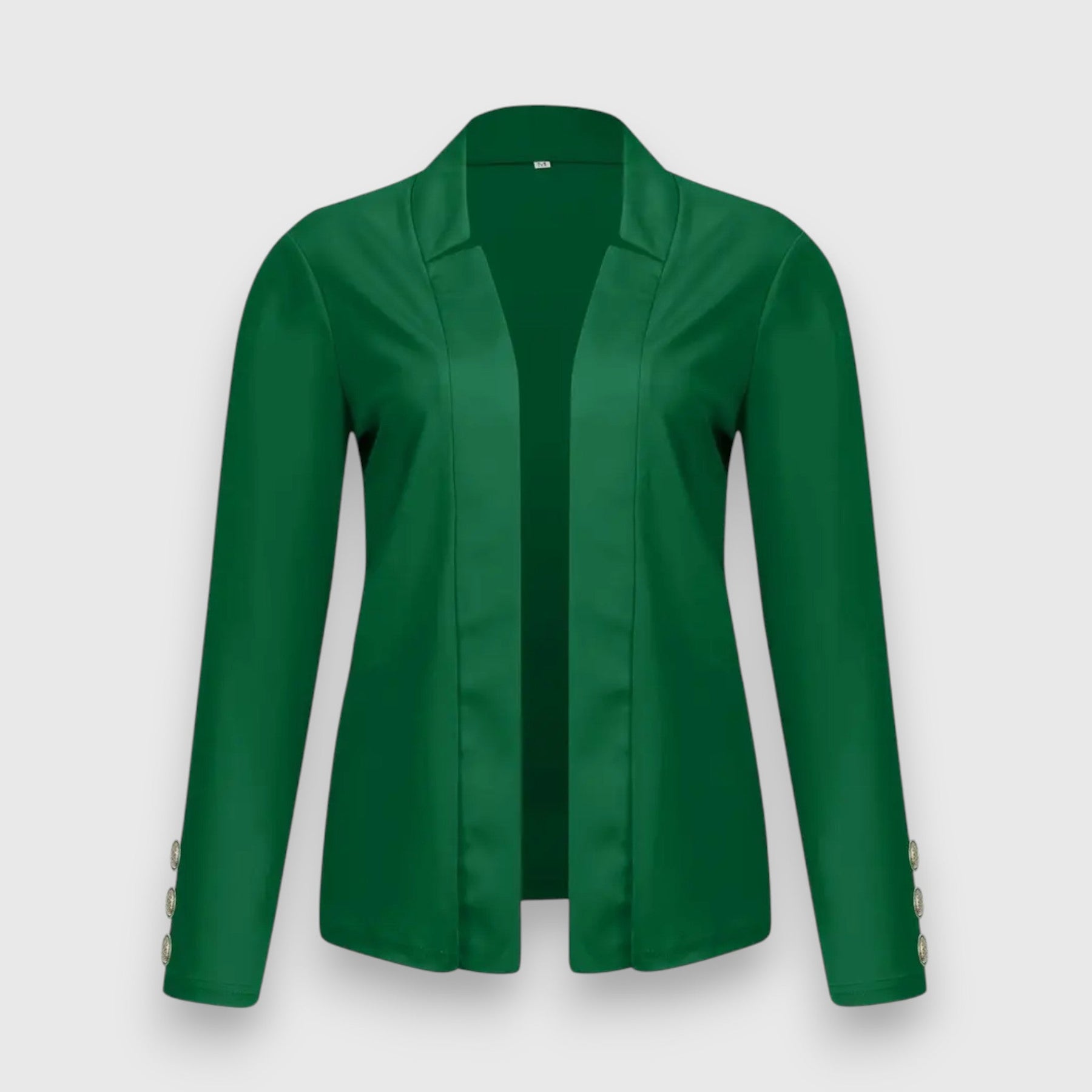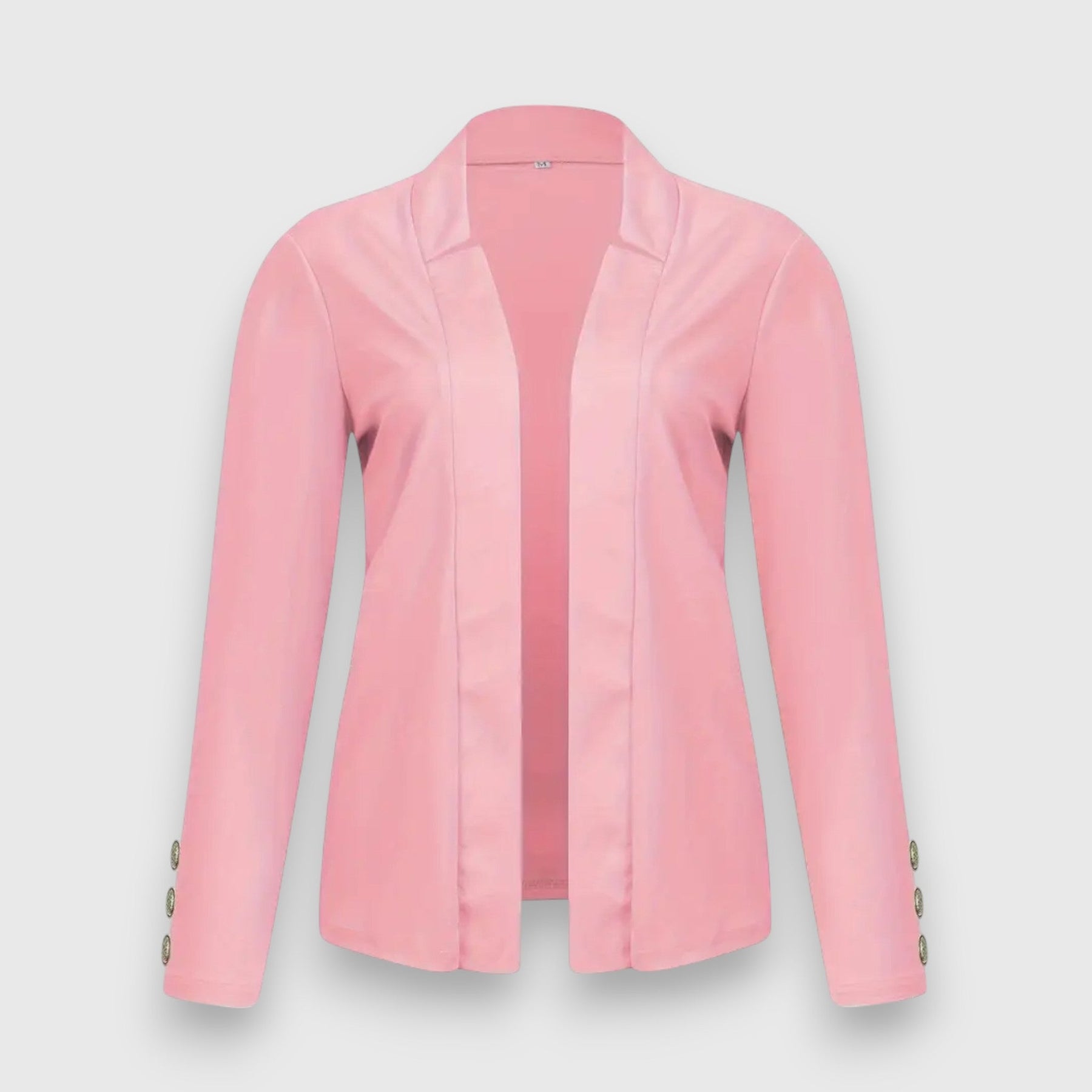 The Mia blazer combines understated elegance with professional style. Its open design with a single button front gives it a modern touch, while the long sleeves and high-quality workmanship ensure optimal comfort. Whether for a formal or casual look, this blazer is a timeless classic for any wardrobe.