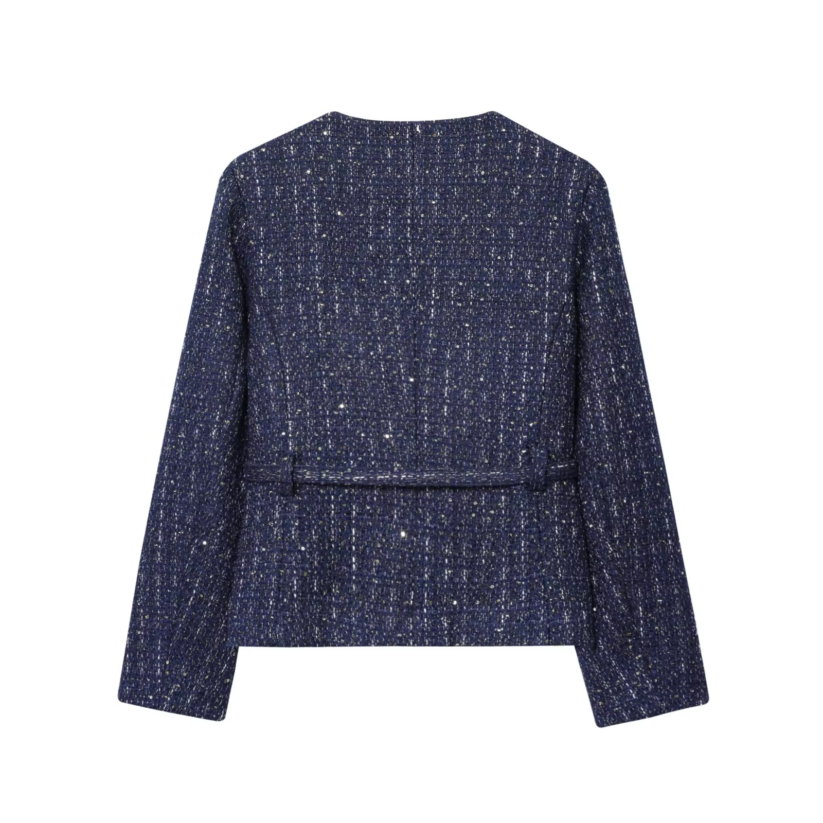 Refined Round Neck Design: The classic round neck gives the jacket a clean, polished look, ideal for showcasing your favorite necklace or scarf.