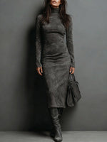 The Cassia | Suede Midi Dress brings timeless elegance to everyday dressing. With its high neckline, graceful midi length, and smooth suede-feel texture, this dress offers warm, modern sophistication. Designed to flatter with ease, it transitions beautifully from daytime outings to polished evenings — comfort, confidence, and elegance in one effortless piece.
