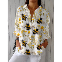 Bianca | Golden Bee Blouse features a delightful design of buzzing bees and delicate yellow blossoms against a fresh white background. This blouse captures the beauty of nature and brings a joyful touch to your wardrobe — perfect for casual days, garden gatherings, or simply embracing a sunny mood.