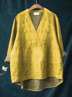 This piece features delicate tonal embroidery across a lightweight woven linen fabric, paired with a flattering deep V neckline and relaxed shape. Soft, breathable, and beautifully minimal, it's the top that elevates any day without trying too hard.