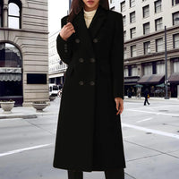 Women's Fashion Casual Long Double Breasted Solid Woolen Coat With Pockets Woolen Coat