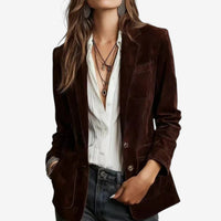 A symbol of timeless elegance, this suede-inspired blazer captivates with its velvety texture and refined silhouette. Its tailored cut subtly shapes the figure while maintaining natural fluidity. The warm tones and smooth finish evoke quiet confidence and remarkable versatility, making it an essential piece of modern elegance. A perfect balance between relaxed charm and refined assurance.
