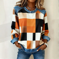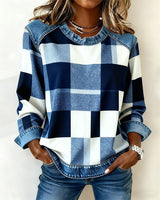 Quinn - Sweatshirt with Check Patchwork and Contrast Color