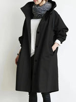 Face the rain with confidence in the stylish trench coat Lara. With its water-repellent finish, this coat combines comfort and protection in an elegant fit. The oversized silhouette, adjustable hood with drawstring, and elasticated cuffs keep you dry while maintaining a trendy look – perfect for unpredictable weather and a sleek everyday style.