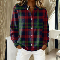 The Holly blouse combines a vibrant color palette of dark burgundy and dark green. The checked pattern provides a classic look that also feels modern. The button placket and neat collar make this model versatile and easy to combine.