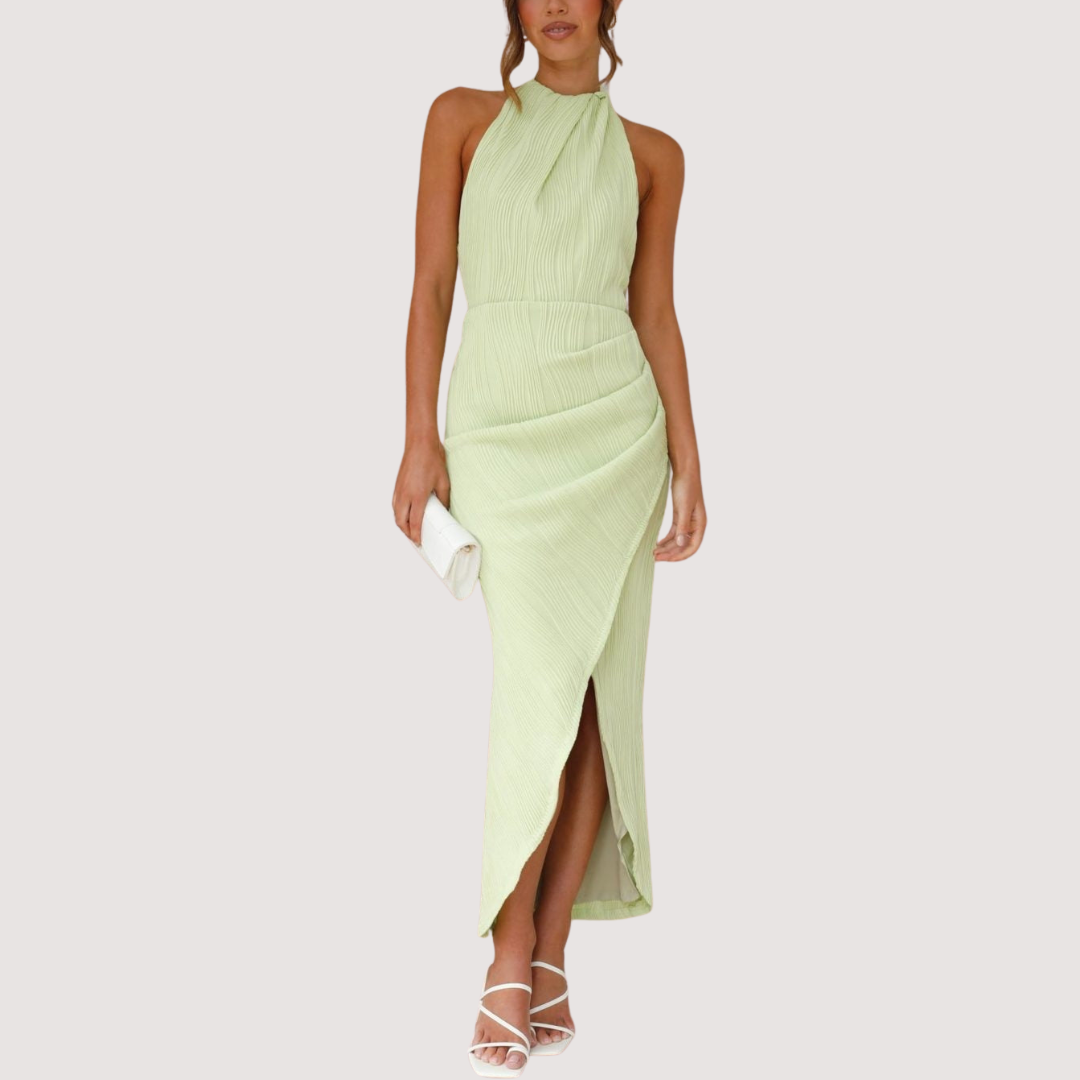 Introducing Shyann – an elegant pleated dress! This exclusive dress features a high neckline, open back, and a stylish front pleat, perfect for making statements at any event. The pleated fabric adds structure and depth, while the asymmetrical design highlights its sophisticated charm. The Shyann dress is ideal for evening events and pairs beautifully with minimalist accessories, allowing you to dazzle with elegance and style. Elevate your wardrobe with this timeless piece!