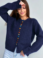 3. Playful Button Accents – Colorful buttons add personality and charm to a classic cardigan.